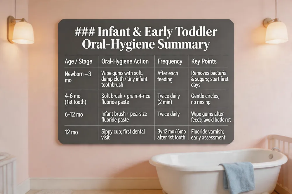 Infant & Early Toddler Oral‑Hygiene Summary