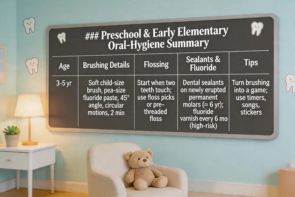 Preschool & Early Elementary Oral‑Hygiene Summary