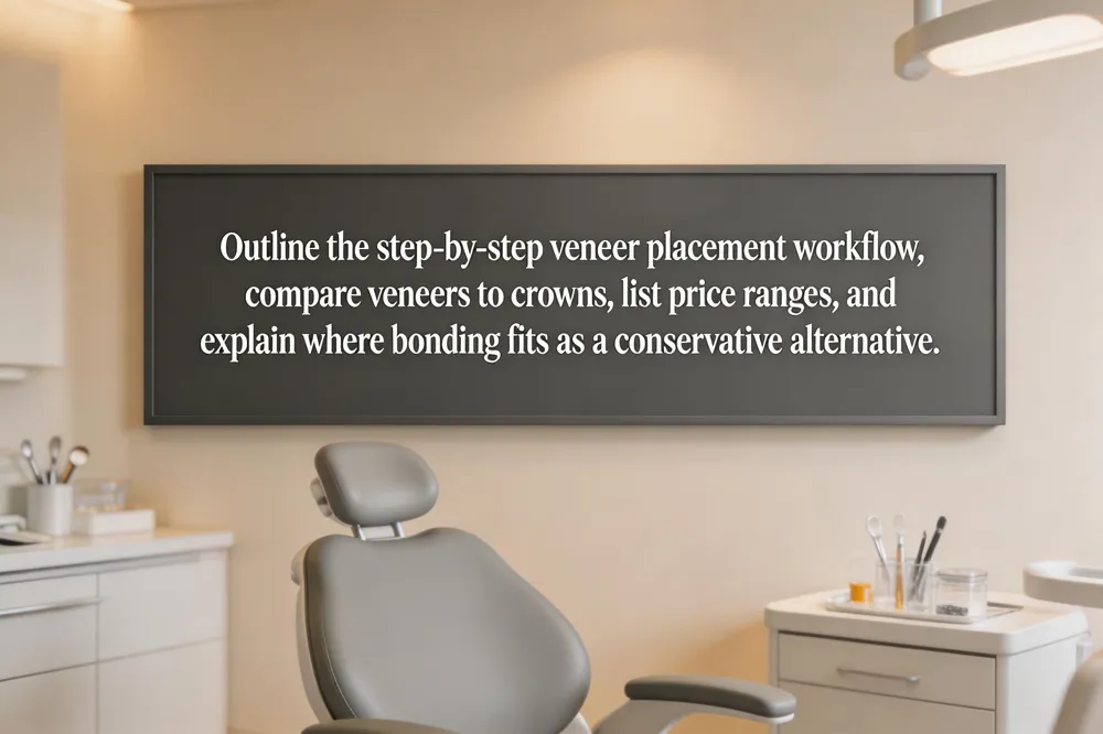 Where bonding fits Dental bonding uses a tooth‑colored composite resin, is the most conservative and affordable option for minor chips, gaps or short‑term aesthetic fixes, but it stains more easily and is less durable than veneers or crowns. In a decision tree, bonding is ideal for small, quick repairs; veneers for moderate cosmetic enhancement; and crowns for extensive structural damage or when full coverage is needed.