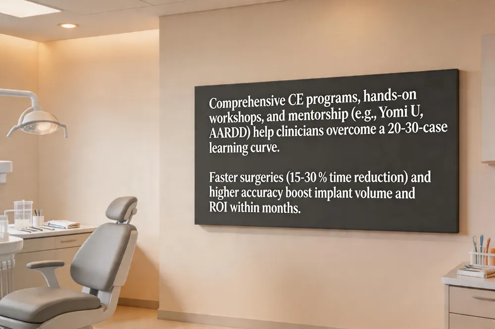 Learning curve and ROI Initial adoption requires a learning curve—typically 20‑30 supervised cases before a clinician feels fluent. However, clinical studies show that robotic guidance reduces operative time by 15‑30 % and improves placement accuracy, translating into higher implant survival rates and fewer revisions. Practices that integrate robotics often see a 60 % increase in implant volume within six months, offsetting the upfront investment and delivering a favorable return on investment.
