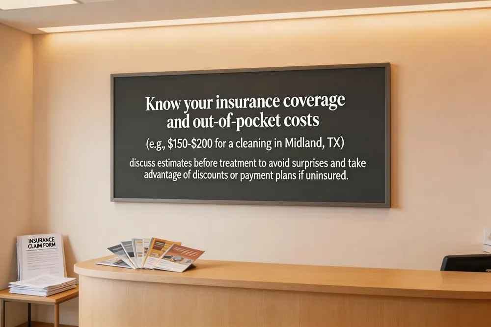 In Midland, Texas, a routine exam and professional cleaning typically falls between $150 and $200, often including a set of diagnostic X‑rays. Most dental plans cover 70‑80 % of the allowed amount, leaving insured patients with an out‑of‑pocket cost of roughly $60‑$80. Uninsured patients can benefit from office discounts, payment plans, or dental savings memberships.