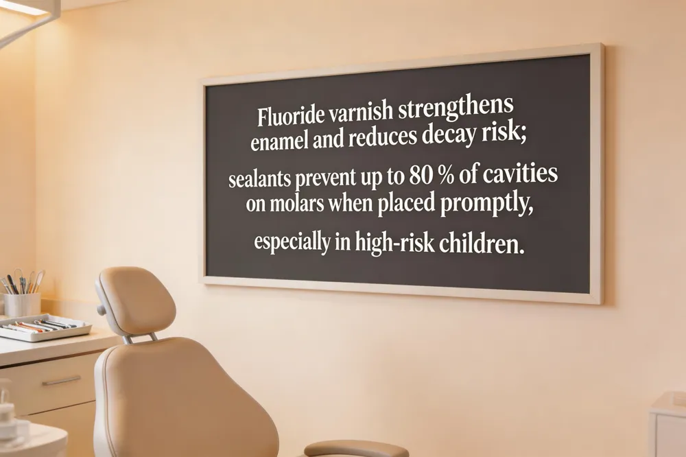 Dental sealants can prevent up to 80 % of cavities in children provide a protective barrier on the chewing surfaces of molars, preventing plaque and food particles from lodging in pits and fissures. Clinical data show sealants can reduce occlusal caries by up to 80 % when applied shortly after eruption, especially in high‑risk children. For maximum benefit, sealants should be placed as soon as permanent molars emerge (around age 6) and combined with regular fluoride varnish applications, ideally twice a year, to sustain enamel strength and further curb decay.