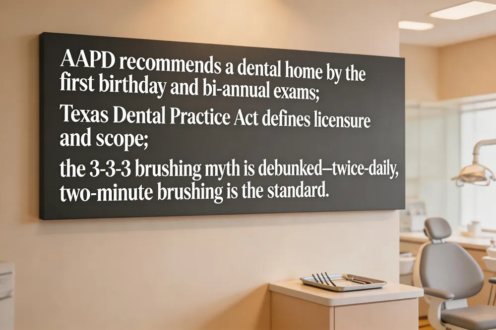 The “3‑3‑3” myth suggests brushing three times a day for three minutes and stopping three hours before bedtime. Major dental organizations endorse brushing twice daily for two minutes; excessive frequency or duration offers no added benefit and may irritate gums.