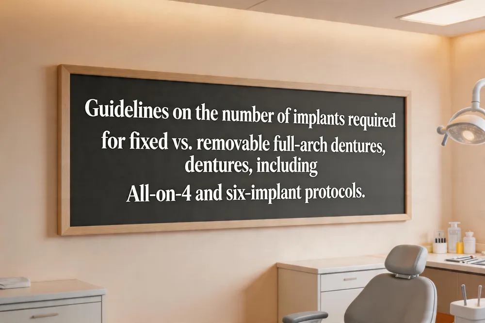How many implants are needed for full mouth dentures? A full‑arch denture typically uses four to six implants per jaw; All‑on‑4 relies on four, while six‑implant protocols add extra posts for enhanced stability. Removable options may need only two to three implants.