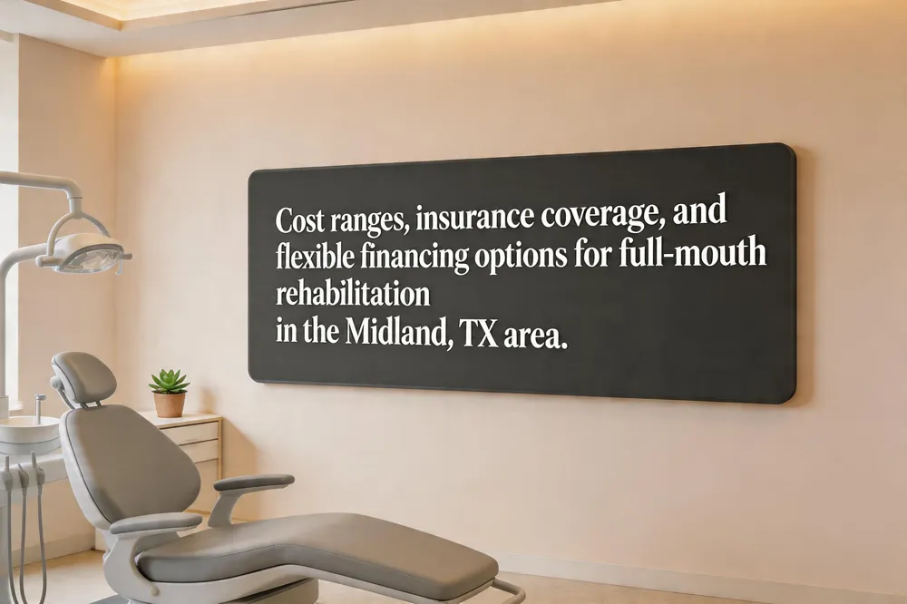 Full‑mouth rehabilitation is an extensive, multi‑step treatment that can range from $20,000 to $60,000 or more, depending on the number of crowns, bridges, implants and bone‑grafting procedures required. Most dental insurance plans cover a portion of the restorative work—typically 50‑80 % of crowns, bridges and implant surgery—while the remaining balance is billed to the patient. To bridge the gap, many Midland practices offer flexible financing options, including CareCredit, in‑house payment plans, and zero‑interest promotional periods that allow patients to spread costs over 12 to 36 months.