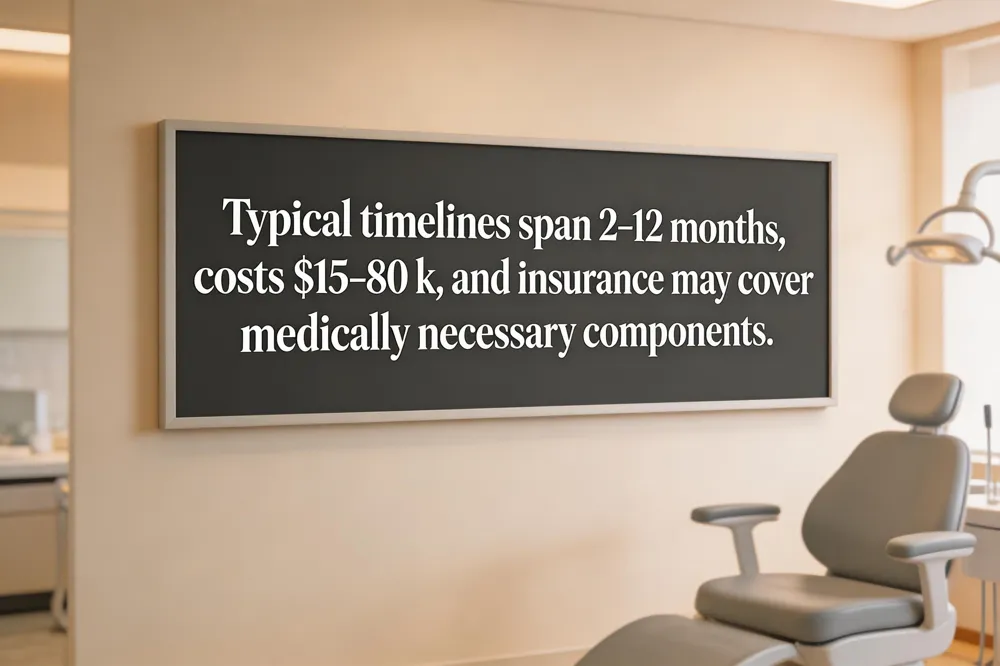 Insurance coverage is nuanced. Medically necessary components—such as extractions, periodontal treatment, implant placement, and prosthetic crowns—may be partially reimbursed by dental PPO or HMO plans, typically covering 50‑80 % up to the annual maximum ($1,000–$2,000). Purely cosmetic procedures (veneer whitening, aesthetic polishing) are usually excluded. In‑network providers reduce out‑of‑pocket costs, while out‑of‑network care can increase patient responsibility. Patients should confirm pre‑authorization, annual limits, and any exclusions before treatment to understand the true financial impact. Many practices also offer flexible financing to bridge gaps between insurance payouts and the total cost.