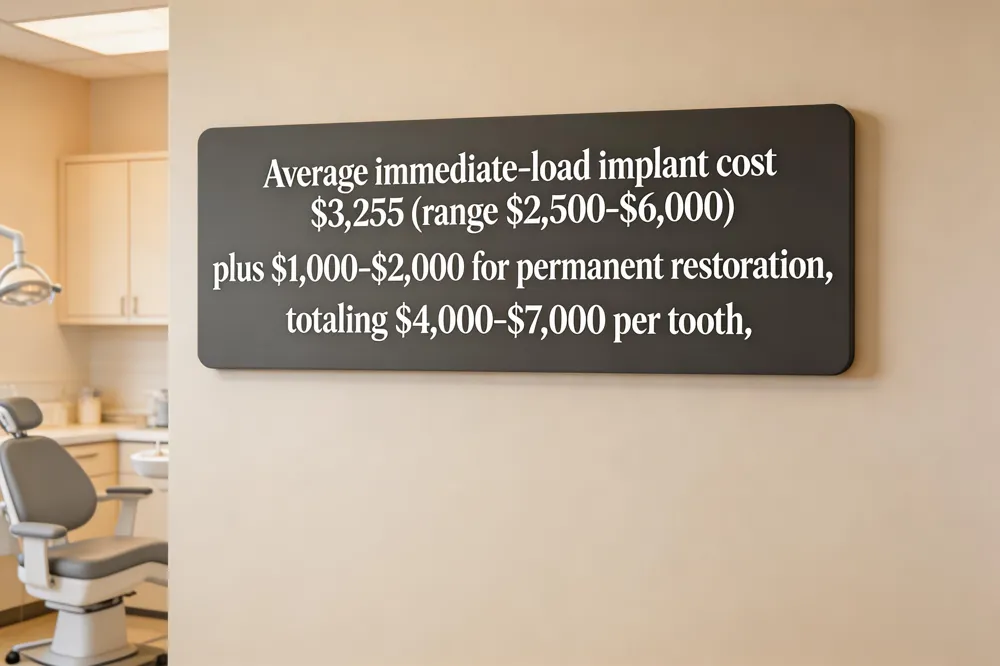 Immediate (same‑day) dental implants streamline treatment but carry a distinct price structure. The national average for a single immediate‑load implant is about $3,255, with typical fees ranging from $2,500 to $6,000 per tooth; this includes the titanium post, abutment and a temporary crown placed within 48‑72 hours. A permanent restoration adds roughly $1,000‑$2,000, so patients should budget $4,000‑$7,000 per implant for the complete sequence.