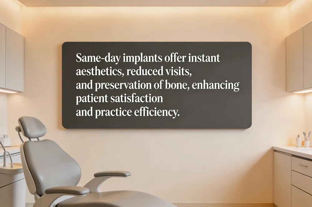 Patient‑centered benefits include a dramatically shortened treatment timeline, elimination of a visible tooth‑less interval, and fewer surgical visits. Patients enjoy instant functional and aesthetic restoration, which improves confidence, speech, and nutrition. The one‑stage approach also preserves alveolar bone and soft‑tissue architecture, reduces postoperative discomfort, and can lower overall costs by avoiding temporary prostheses and additional appointments.